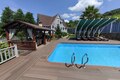 На территории участка имеется открытый круглогодичный бассейн с подогревом, детская площадка, высокоскоростной интернет, видеонаблюдение, оборудованная зона барбекю и патио - зона отдыха с костром, прекрасные зеленые насаждения, плодовые деревья.