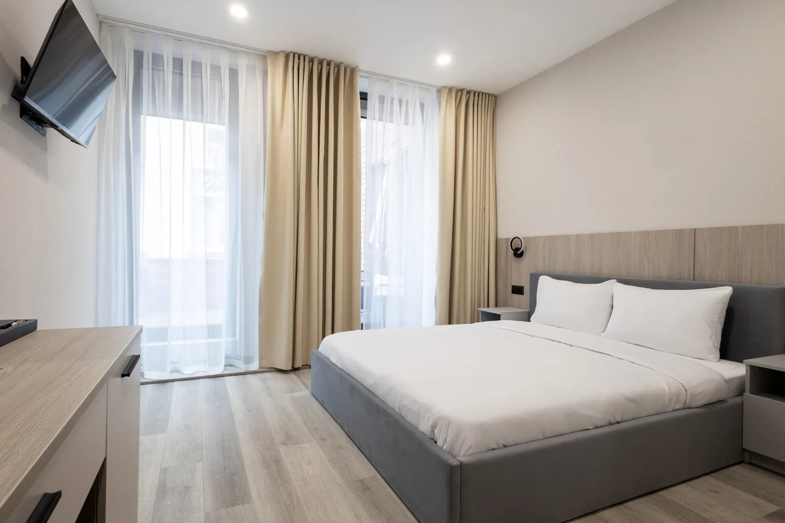 После насыщенного дня вас ждет комфортная двуспальная кровать, а для удобства предусмотрены телевизор, чайная станция, продуманная система хранения и сплит-система. Ванная комната оснащена современной душевой, зеркалом с подсветкой, феном и набором косметических принадлежностей.