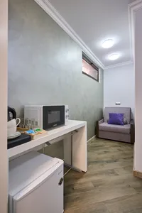 В номерах есть электрический чайник, посуда и холодильник. На территории размещен ресторан и бар. В шаговой доступности есть кафе, пиццерия, а также продуктовые магазины.
