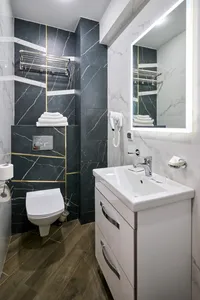 В номерах предусмотрены Wi-Fi, телевизор, кондиционер, сейф, кровать, шкаф, кроме этого, в ванной комнате есть душ и фен. По предварительному запросу возможно заселение с питомцами до 10 кг.