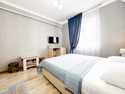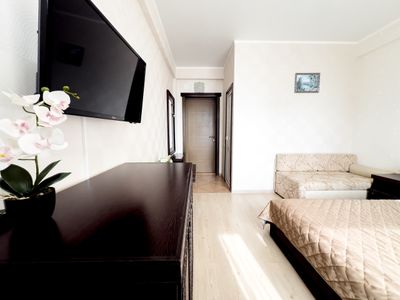 Наш современный четырехэтажный гостевой дом расположен на первой береговой линии. Благодаря тихому району здесь вы сможете отдохнуть от повседневных забот. До моря наши гости доходят обычно за 3-4 минуты.От вокзала Адлера до нашего отеля 5 минут езды на маршрутном такси.