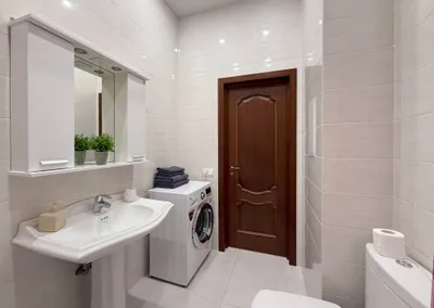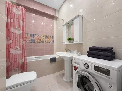 В ванных комнатах: полноценная ванна или душевая кабина, стиральная машина, есть фен, шампунь, туалетная бумага, порошок.