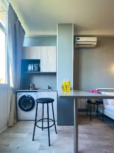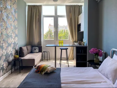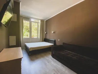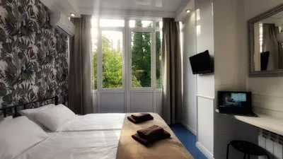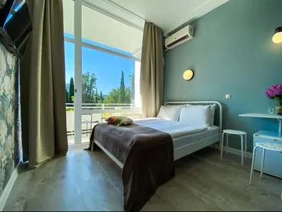 Удобное расположение. Рядом остановка общественного транспорта, продуктовый магазин. В пешей доступности парк Дендрарий и набережная с пляжами, кафе и сувенирными магазинами. Снимали номер на троих - для троих тесновато, но если рассматривать как вариант переночевать, то вполне пойдет. Здание находится рядом с основной дорогой города, насколько я понимаю, в номере шумновато даже при закрытой балконной двери. Будьте готовы к оплате наличными или переводом. При прочих равных неплохой вариант.