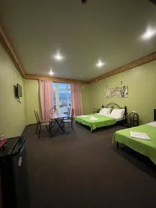 Отдыхала в этом гостевом доме с 8 по 13 сентября. Все было прекрасно! Абсолютное соответствие с фото, которое представлено на сайте. Все очень чисто, красиво и со вкусом. По приезде сразу встретили, заселили, все показали. В комнате был балкон, с которого открывался прекрасный вид и на котором можно посидеть и атмосферно позавтракать/обедать/ужинать. Очень понравилось, что на крыше есть бассейн, столы, стулья, качели. Можно с комфортом посидеть и понаблюдать за закатом, так как там открывается невероятный вид на море и вечером на закат. Буквально в 5 минутах ходьбы есть все магазины, кафе, рынки, аптеки. До моря спокойным шагом не больше 10 минут. Впечатления от этого отдыха остались только положительные! Большое спасибо Вам за гостеприимство!