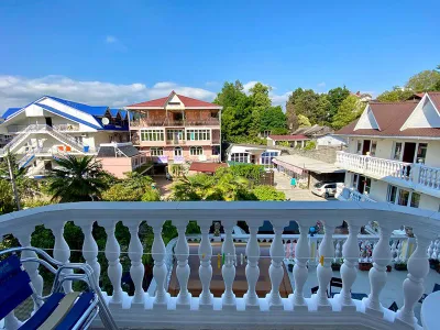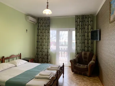 Близость к пляжу минуты 4. Но нужно переходить через жд пути, так себе конечно. Если идти нормальной дорогой тоже не долго, минут 10. По дороге сеть магнит, пятерочка, столовые. Номер был у нас на 2ом этаже, окна номера выходят на соседний гостевой дом, т. Е между нашим балконом и балконом соседей примерно 1. 5 метра. Из-за такого расположения света в номере нет совсем, в любое время суток. Бельё на балконе за сутки не высыхает. Ну и в номере стоит застоявшийся запах сырости. Из освещения 1 бра из 2 лампочки на весь номер. В ванной и плесень и запах. Раковина и унитаз весь в трещинах. С горячей водой постоянные проблемы были. В номере все очень старое-ветхое. И все очень грязное. По углам паутина. На стенах убитые комары висят. Матрас весь продавлен, просто огромная вмятина посередине. Постельное бельё все в дырках. Не знаю кому то может и достался нормальный номер они и пишут восторженные отзывы, но то что досталось нам это отвратительно! И ещё на территории курят везде. В летнем кафе, у бассейна, на лестничных пролетах, на балконах.