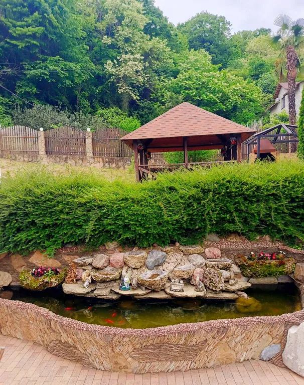 Комплекс окружен горами и находится на территории Сочинского национального заповедника, что обеспечивает тишину, чистейший воздух и великолепные виды. На территории вы найдете